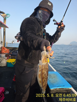 비비2호.5월7일 갑오징어조황어제는 하루종일 구슬비에 오늘은여름같은 더위때문에 갑오징어는 물이 안가서 오전 내내 초보조사님들고생들 하시고 좀 잡는 분들은 오전에16~20갑 1시 반 부터는 물이 조금가서 풍치고 4시40분에 마감하고입항하였습니다. 오늘에 장원은 32갑하지만 씨알이 반반 입니다.저는 오늘 잡은것은 3마리 빼고 35갑 무료 나눔을하였네요. 오늘 선답.좌현.우현 앞쪽조사님들은 20갑 이상씩. 초보조사님한자리수도 있어서 오늘 제가 잡은갑오징어 28마리는 초보조사님들에게 (개인에따라서 7마리~3마리씩)오♡호님 오늘 갑이 졸업식이라서대물급으로 7마리 주었고 오늘 내려온 집사람.어머니 드리려고 3마리손질해서 회감으로~내일 나가면 9일은 쉬고 10부터 출항주말은 기상이 좀 아쉽지만 월요일부터는 좋은 기상으로 좋은 조항을기대할수 있습니다. (최대38갑.32갑.27갑.24갑.22갑)(19갑.14갑.10갑.으로 마무리) *** 제주 비비호 예약 안내 ***예약문의 : 010-5217-6053예약문의 : 010-3459-0880오시는길 : 제주 제주시 임항로 97 제주항2부두(서쪽어선항)홈페이지 : https://bb.sunsang24.com/